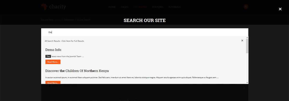 Allow your users to search quickly and without loading or refreshing pages with our amazing ajax search module! Simply publish the module to the 'search' position.